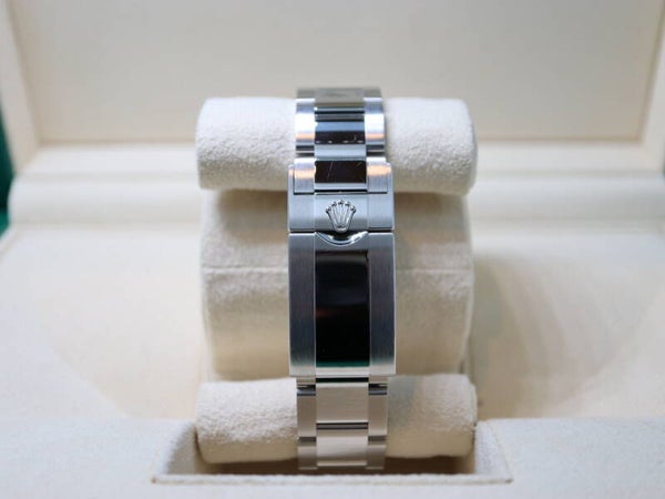 Rolex' zelfopwindend kaliber 3235 uurwerk, met verbeterde gangreserve van 70 uur, waterdicht tot 100 meter en bevestigd aan de Oysterlock-band.