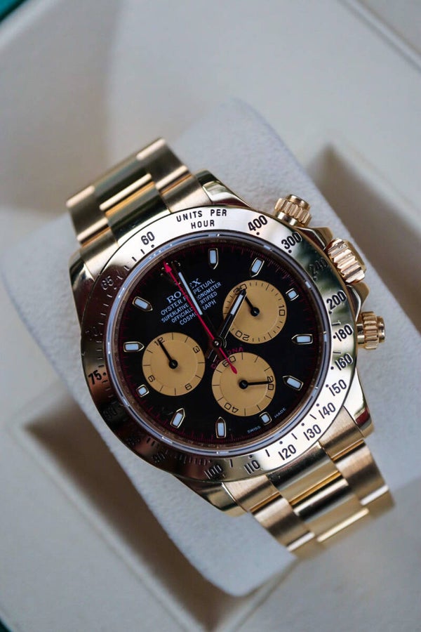 Rolex Daytona in het geelgoud met een Paul Newman wijzerplaat, referentie 116528.